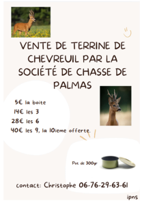VENTE DE TERRINES DE CHEVREUIL PAR LA SOCIETE DE CHASSE DE PALMAS